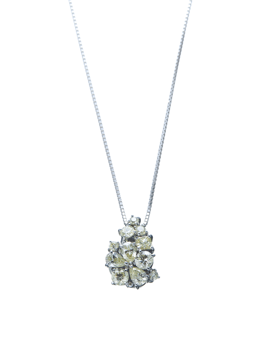 K18WGファンシーカットイエローダイヤモンドペンダント 1.3ct