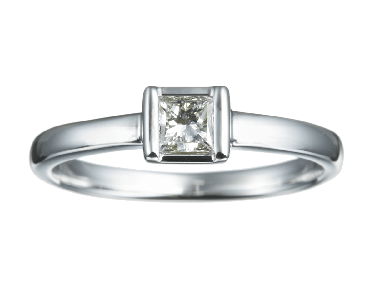 K18WGプリンセスカットダイヤモンドソリティアリング 0.1ct