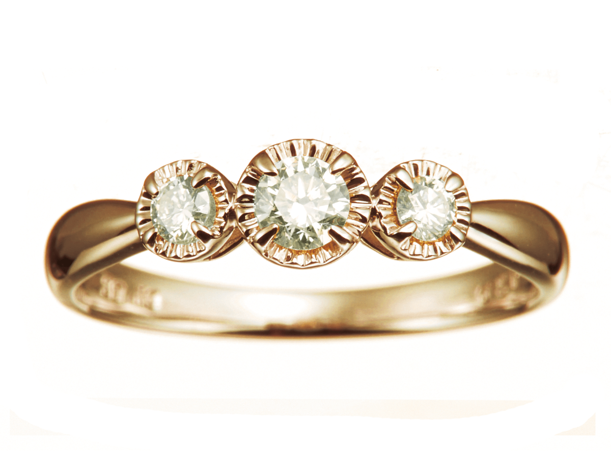 K18ダイヤモンドスパークル3ストーンリング 0.25ct[WG/YG/PG]