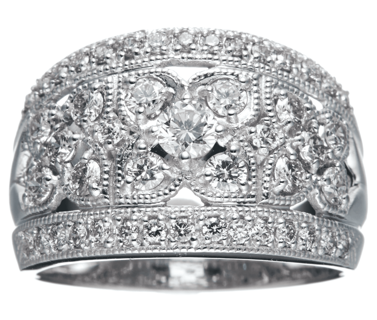 K18WGダイヤモンドフラワーボリュームリング 1.0ct