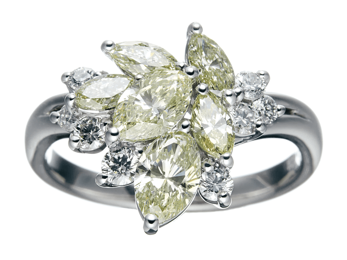 PT900マーキスカットダイヤモンドフラワーリング 1.6ct