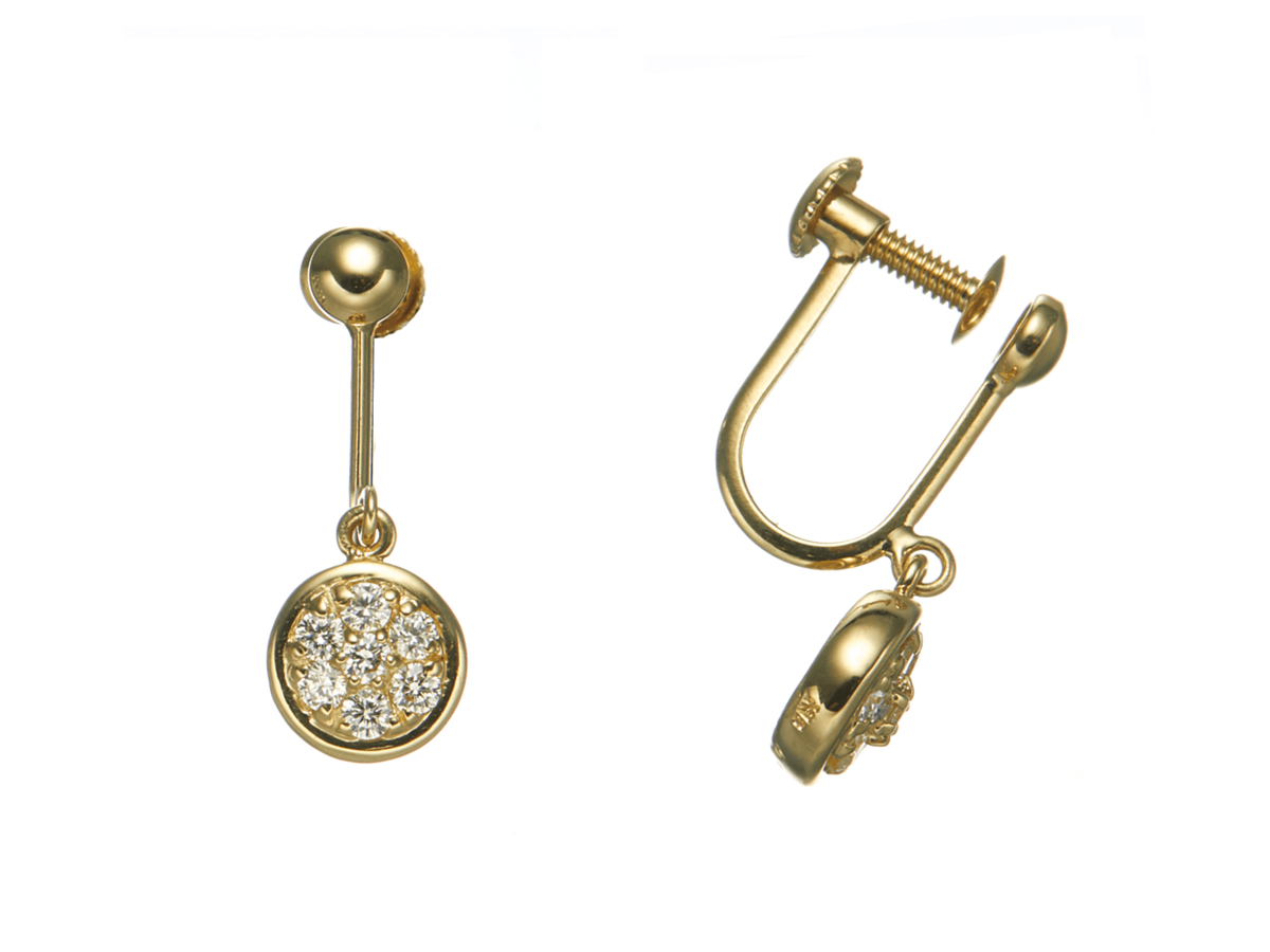 K18ダイヤモンドラウンドスウィングイヤリング0.2ct[WG/YG]
